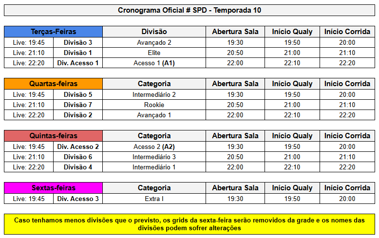 Essa medida tem como objetivo acomodar todos os pilotos dentro de suas disponibilidades. No entanto, nossa prioridade é manter o máximo de equilíbrio técnico entre as divisões.